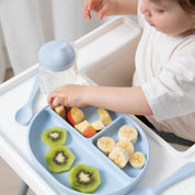 This Silicone Feeding Set is the perfect meal time partner. The plate has a suction bottom which makes it harder to move and detach, and is made from BPA-free, food-grade silicone that can go in the dishwasher and microwave. The suction base firmly attaches to any smooth surface, such as highchair trays or dining tables. It features three divided sections, perfect for separating food for picky eaters and for excellent portion control. The Silicone spoon and fork are the perfect sized for your little one to grab and feed.