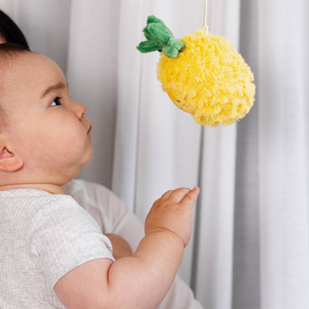These delightful Mini Market Brunch stroller toys are designed to bring joy to your baby's outings. Crafted from soft polyester plush with an engaging rattle inside, they provide sensory stimulation during travel. The convenient attachment clips work seamlessly with stroller hoods, bumper bars, play gyms, and car seats, making them versatile companions for any adventure. Perfect for keeping your little one happily occupied wherever you go.
