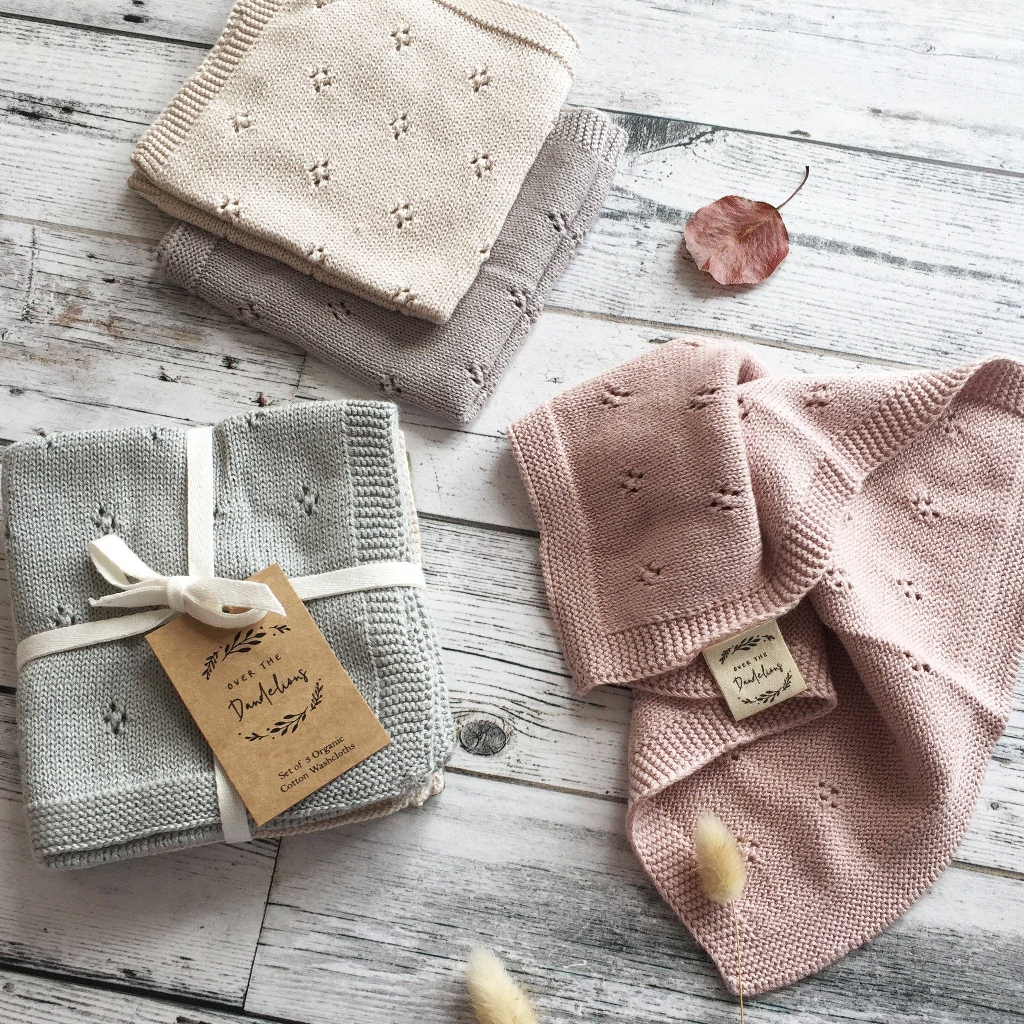 These soft and versatile wash cloths make the most wonderful and practical gift for a newborn baby. Knitted from organic cotton, they are perfect for washing faces, using in the bath, a burp cloth or for mopping up spills. Set of 3 includes one of each colour - Fawn, Thyme & Glacier grey.