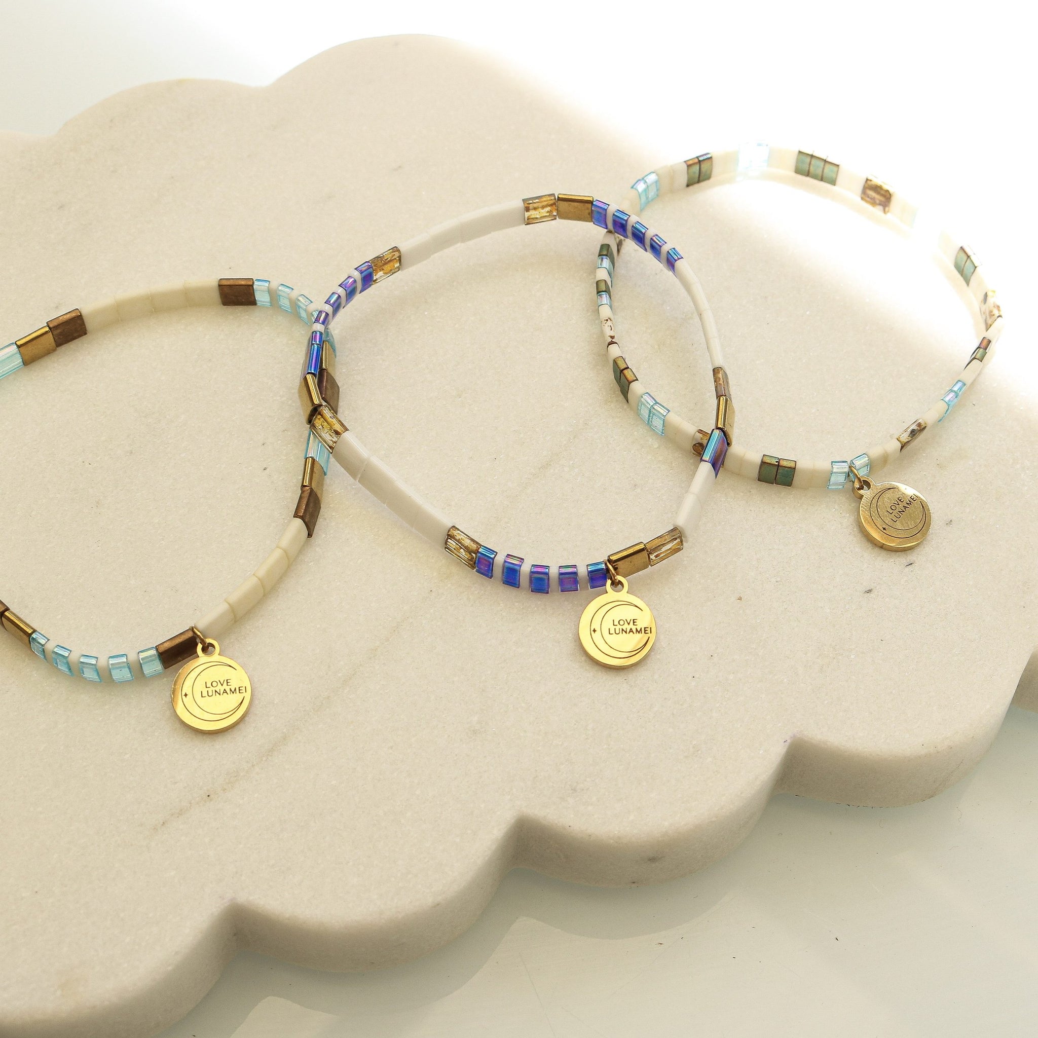 With durable double strand elastic and Japanese Glass beads, Love Lunamei's Love Bracelets are designed for stacking and layering. Love and style, all in one wrist accessory. Stack them, layer them, or just wear one, you can't go wrong.