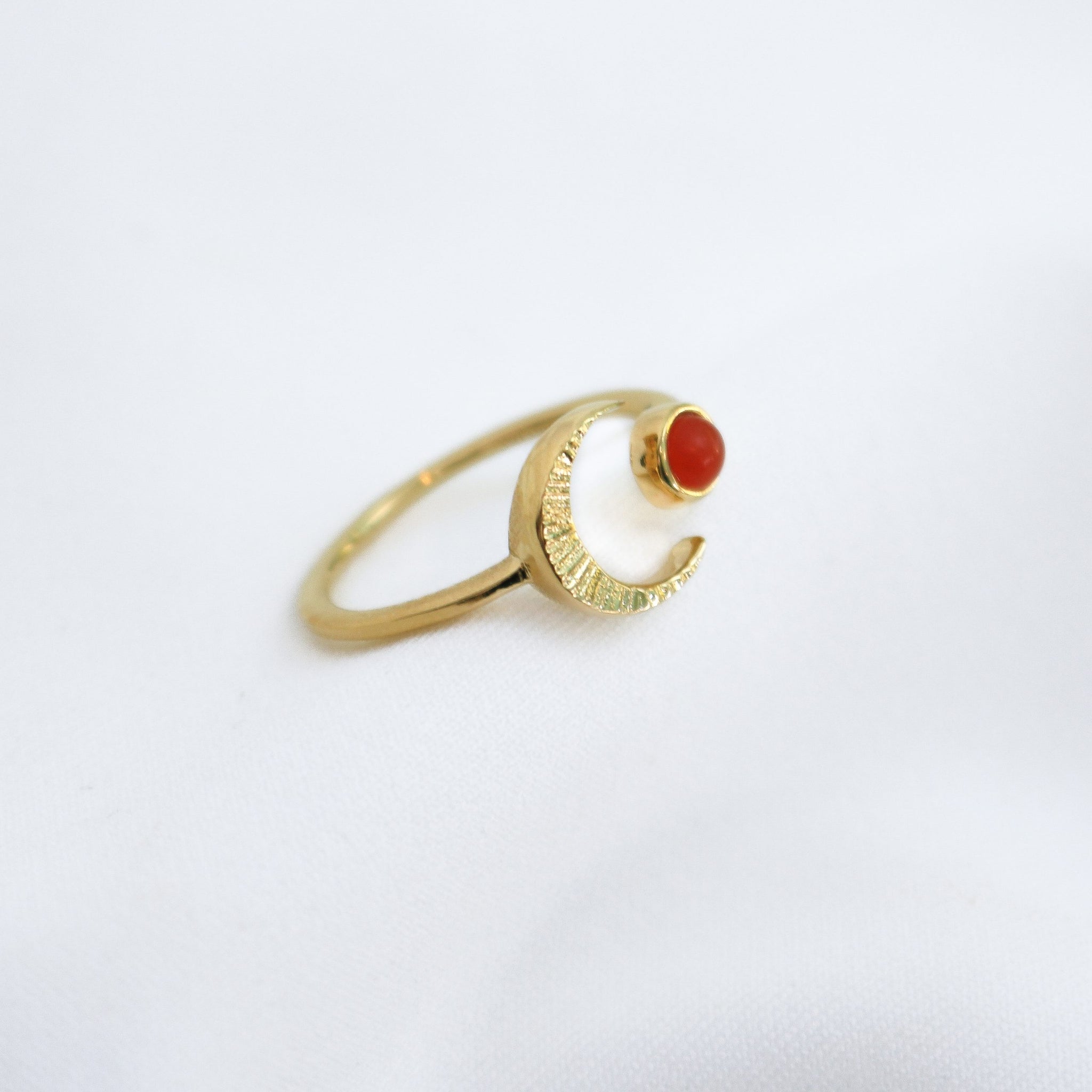 The Prema Ring features a textured crescent design and Carnelian stone. The open design allows for adjustable sizing – just gently either open or close to find your perfect fit. Allow our Prima Ring to remind you that you too are bold, you radiate warmth and joy and have the courage and motivation to achieve all that you wish to accomplish.
