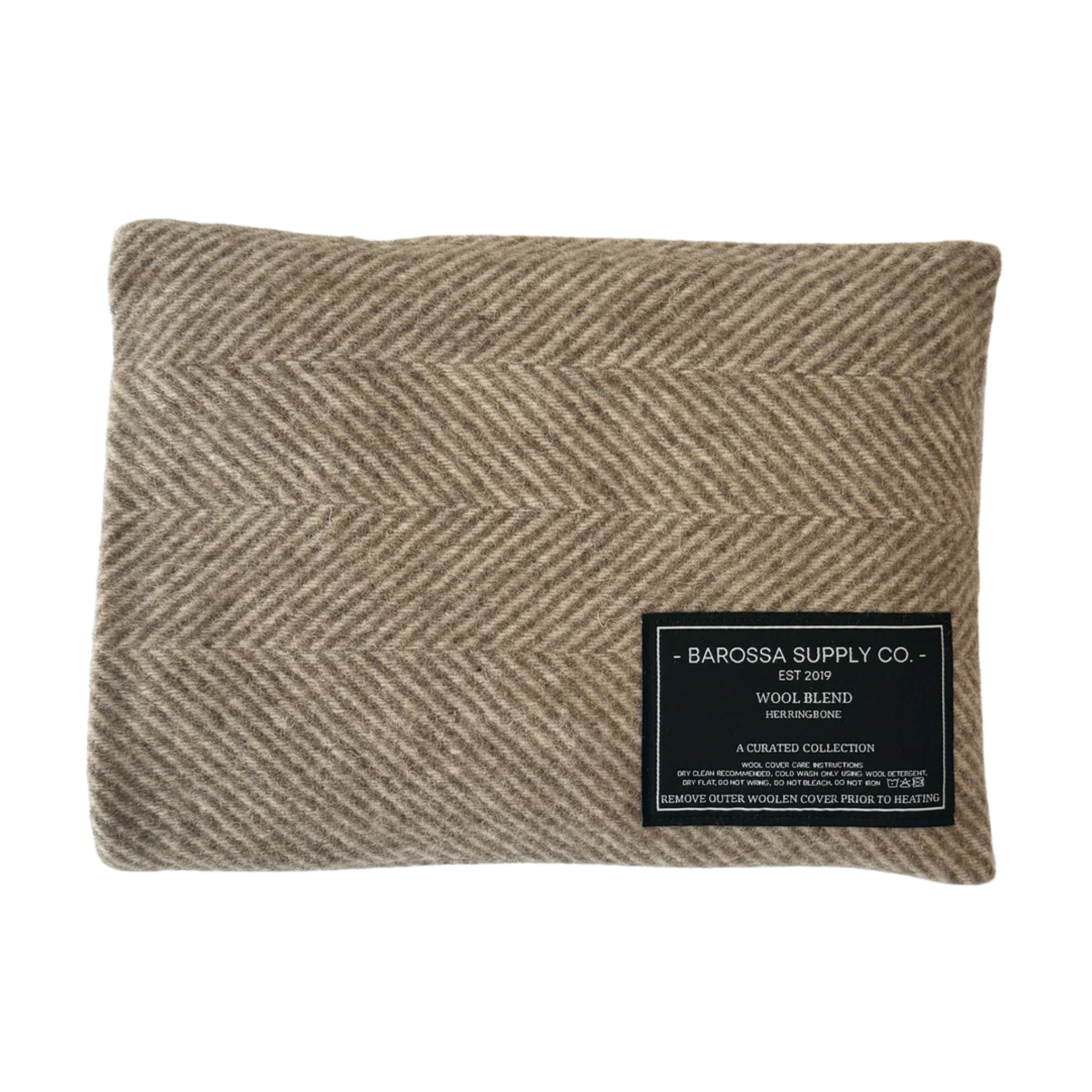 In collaboration with Cotton Apothecary, Barossa Supply Co is pleased to offer a range of herringbone wool blend heat packs. Perfect for providing comfort and warmth, these heat packs are both functional and aesthetically pleasing. They can be used both warm and cold and may provide relief from aches and pains. The unscented heat pack inserts are designed and handmade by Cotton Apothecary in their Barossa Valley and Adelaide studios using organic cotton and Australian grown lupins. These herringbone wool blend heat packs have a removable wool blend cover which is hand crafted in the Barossa Valley.