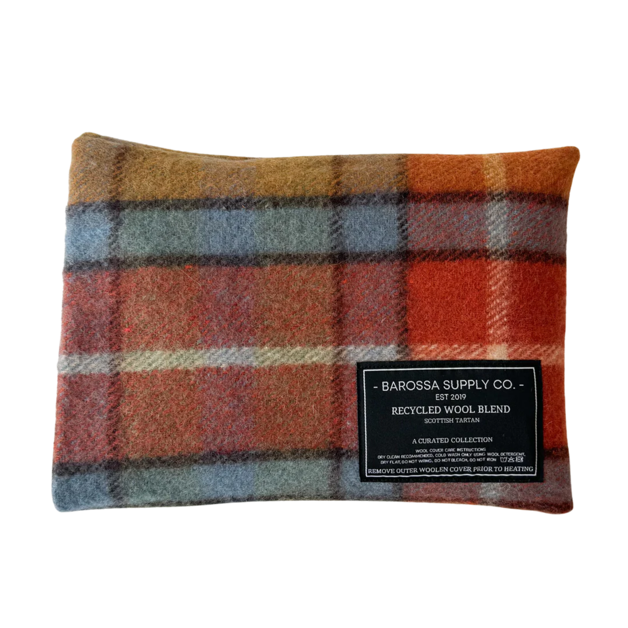 In collaboration with Cotton Apothecary, Barossa Supply Co is pleased to offer a range of recycled wool blend Scottish tartan heat packs. Perfect for providing comfort and warmth, these heat packs are both functional and aesthetically pleasing. They can be used both warm and cold and may provide relief from aches and pains. The unscented heat pack inserts are designed and handmade by Cotton Apothecary in their Barossa Valley and Adelaide studios using organic cotton and Australian grown lupins. These recycled wool blend Scottish tartan heat packs have a removable recycled wool blend cover which is hand crafted in the Barossa Valley.