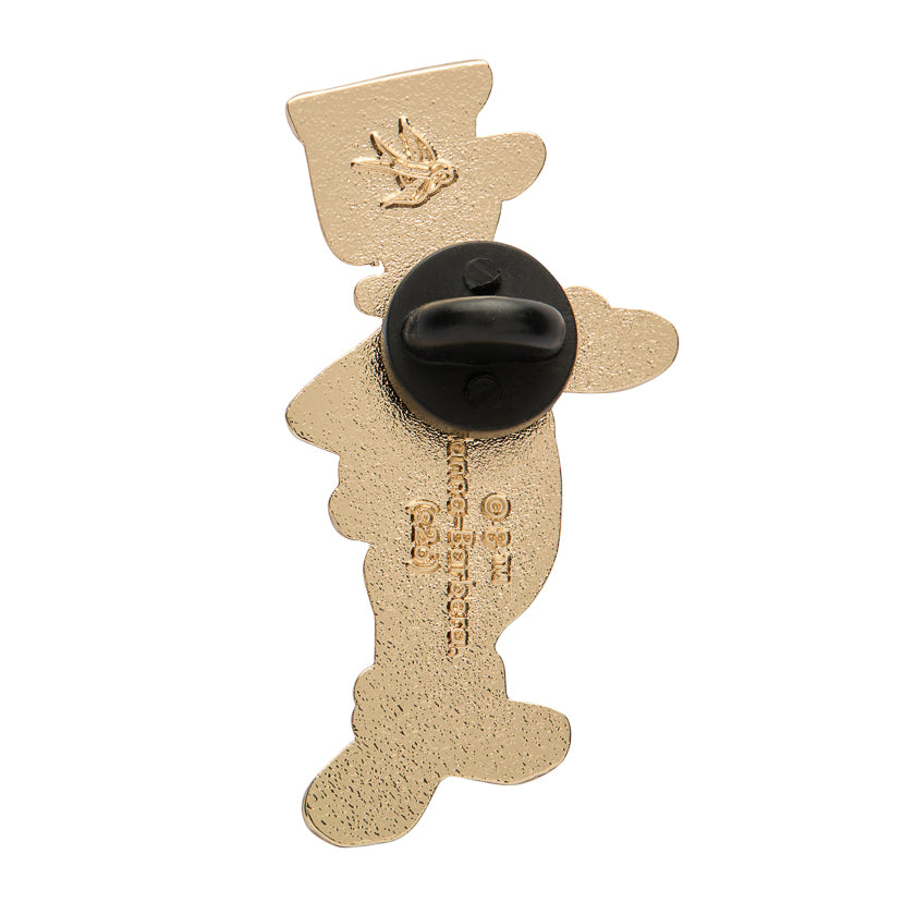 Impress your friends with these high-quality enamel pins from Erstwilder. Available in gold, silver, or gunmetal finishes, each pin features the iconic Erstwilder logo on the back and comes with a rubber clutch. Get your very own enamel pin today with the perfect presentation on an Erstwilder backing card.