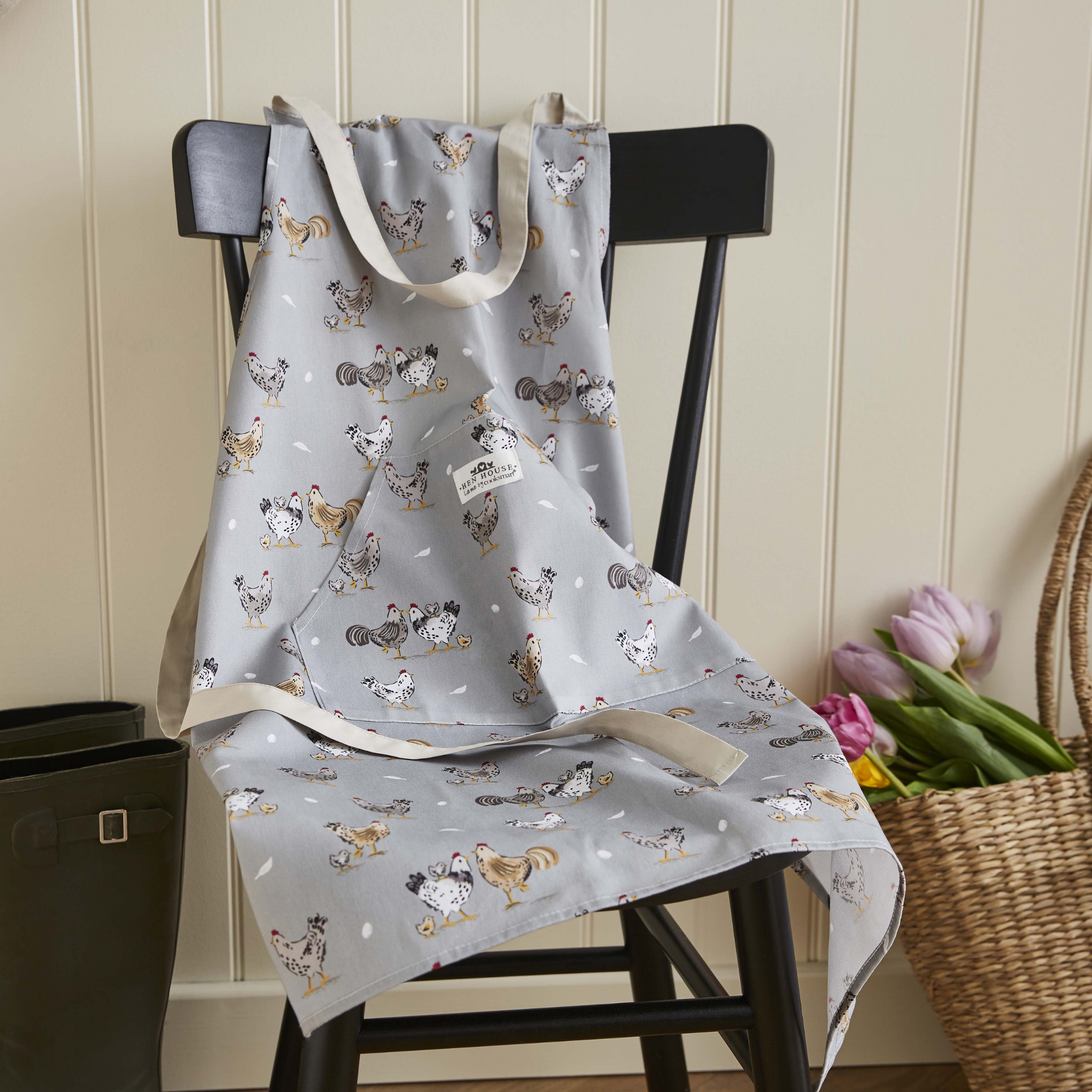 Enhance your kitchen's look with the Cooksmart Hen House Lane Apron. This charming farmhouse-inspired piece features adorable hens and adds a touch of rustic charm to your cooking area. Made from sturdy materials, it keeps your clothes spotless while you cook.