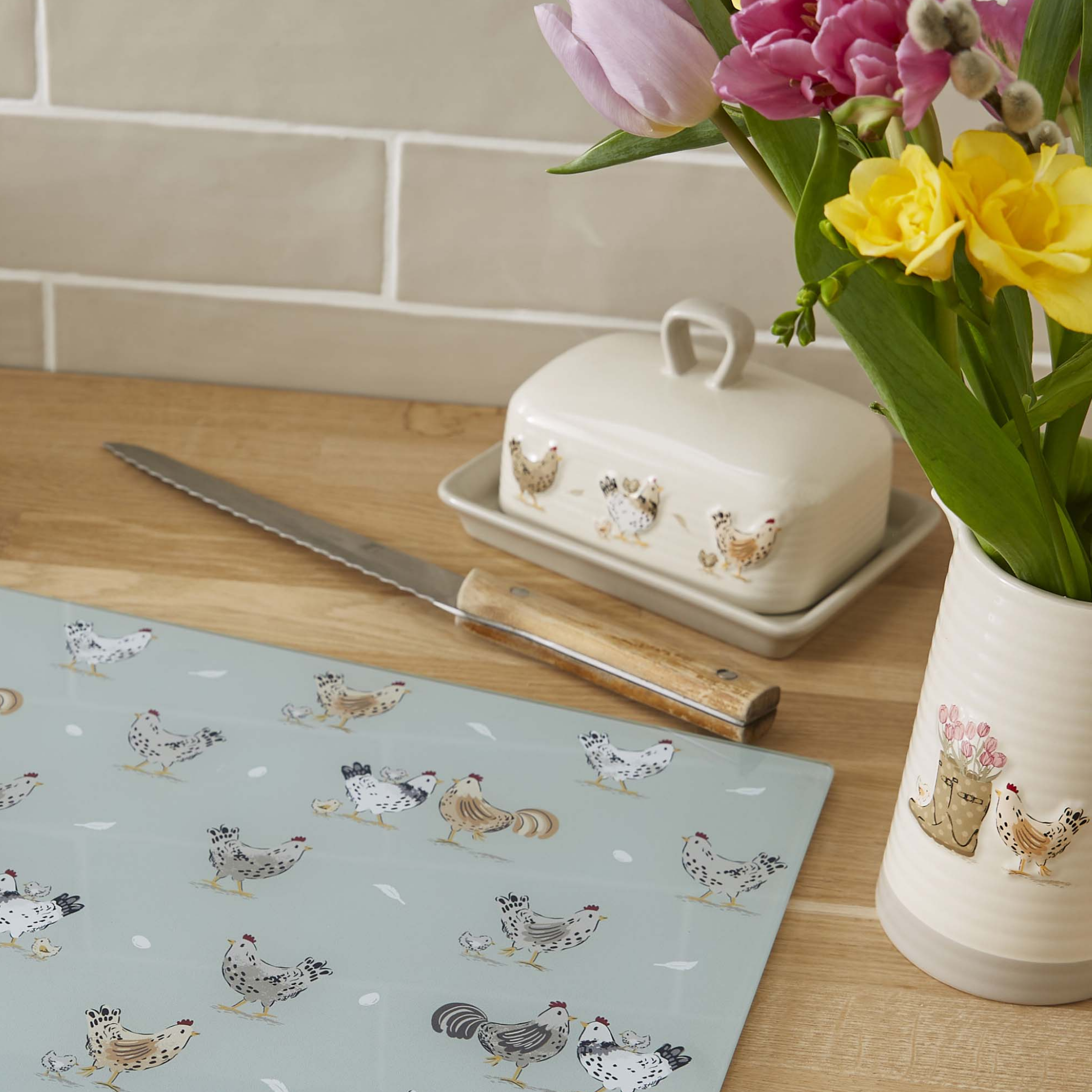 Keep your butter fresh and close at hand with this lovely butter dish from the Hen House Lane line. The delightful country-inspired design brings a cosy feel to any kitchen, while the secure lid helps maintain freshness and works well with both classic and contemporary decor.