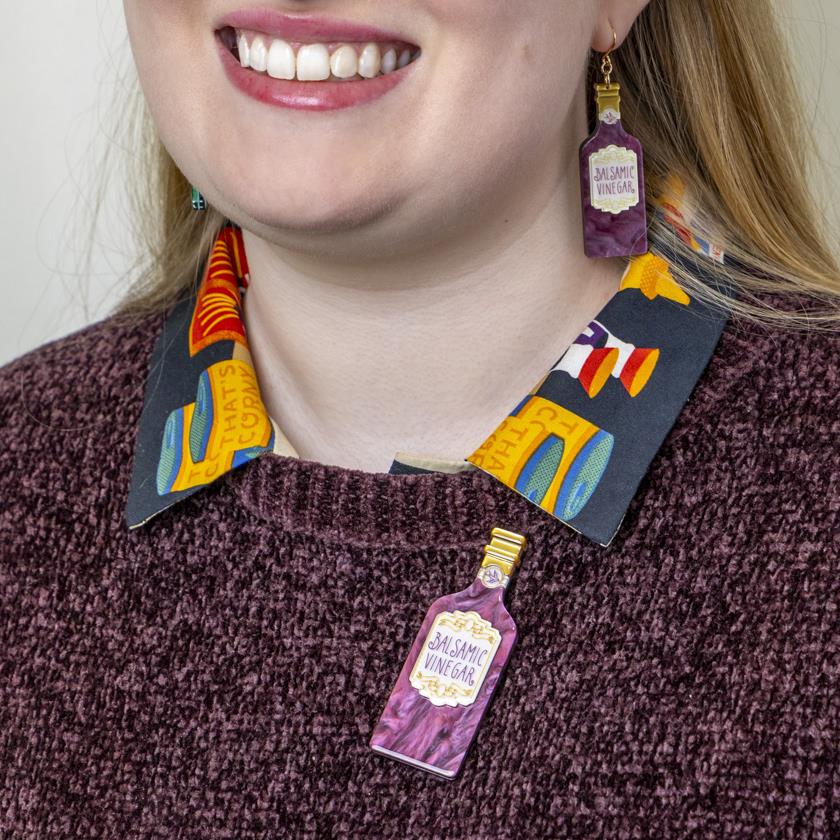The Balsamic Bliss brooch is a tribute to that deep, dark drizzle we reach for when a dish needs that little something extra. Designed in layered resin with rich tones and glassy shine, this limited-run design will speak to salad aficionados and fans of gourmet minimalism.