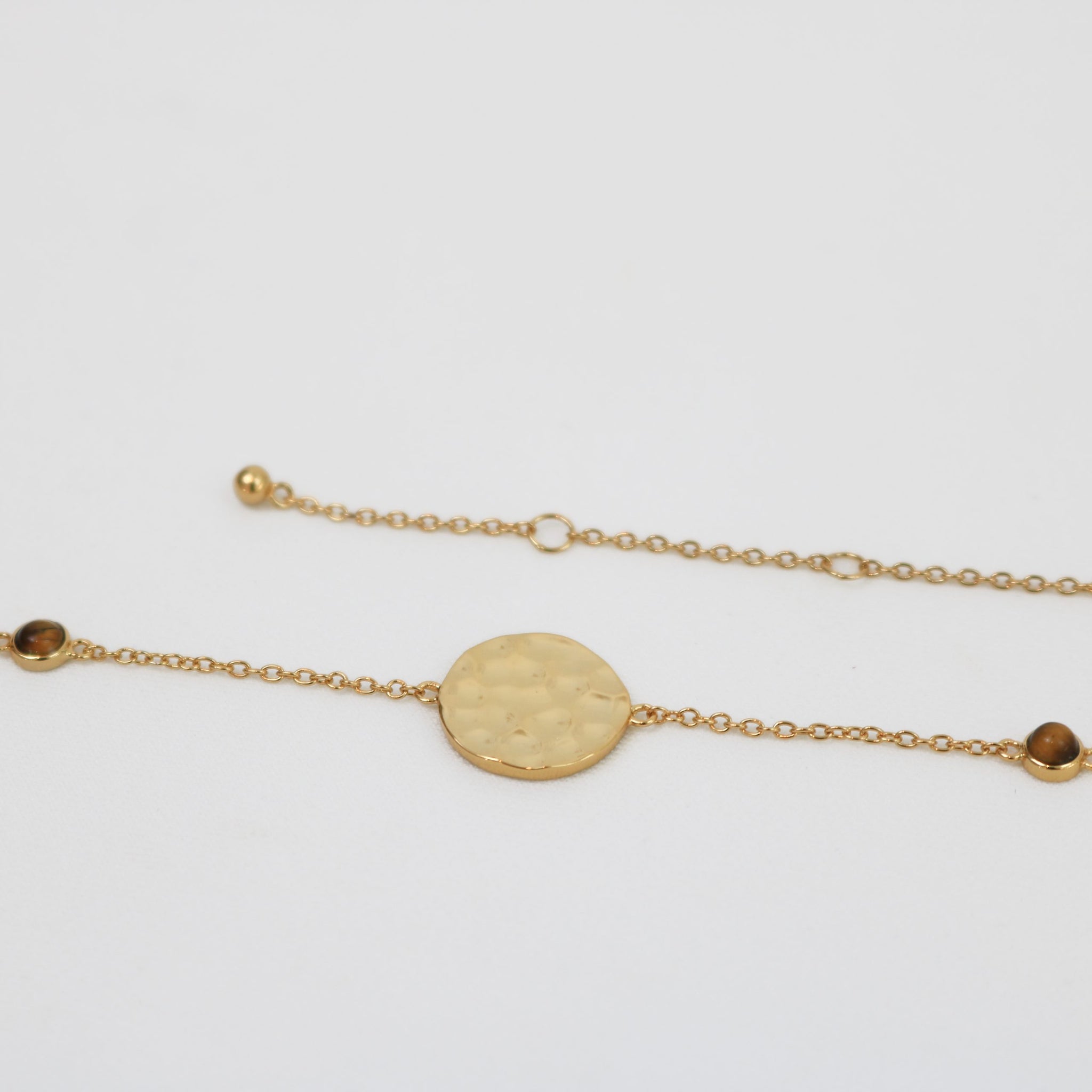 With Tigers Eye charms for protection and to balance energy and a lightly hammered pendant, the Atarah anklet is here to encourage you to follow your own path.