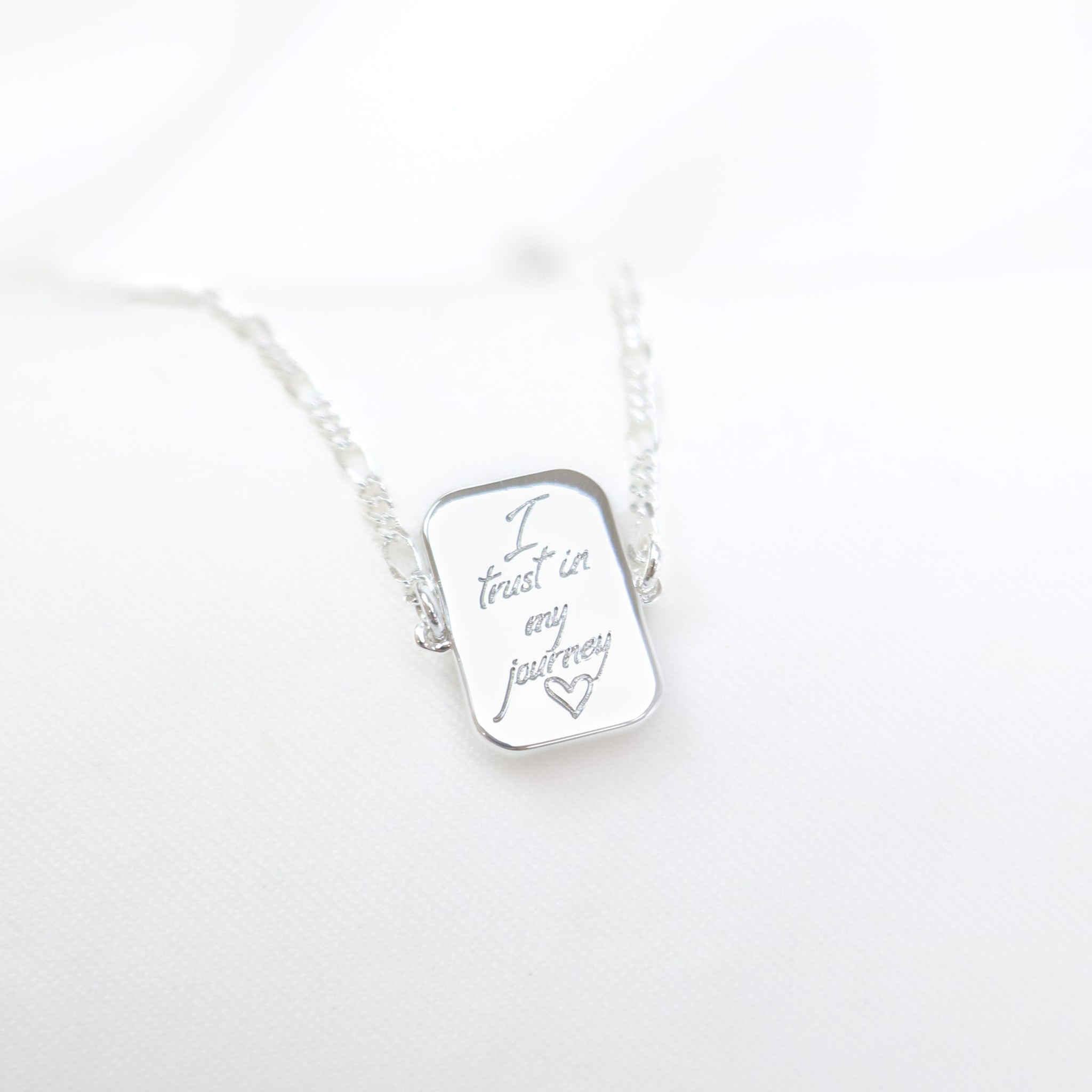 Carry wisdom and courage close to your heart with the recycled sterling silver plated Athena Bracelet. Featuring a striking Tiger’s Eye stone and soft hammered finish, this piece is a reminder of your inner strength. Allow the hidden inscription, “I trust in my journey,” to guide you through life’s challenges and remind you of your bravery. Absorb the grounding energies of Tiger’s eye, step out of your comfort zone and embrace your unique path.