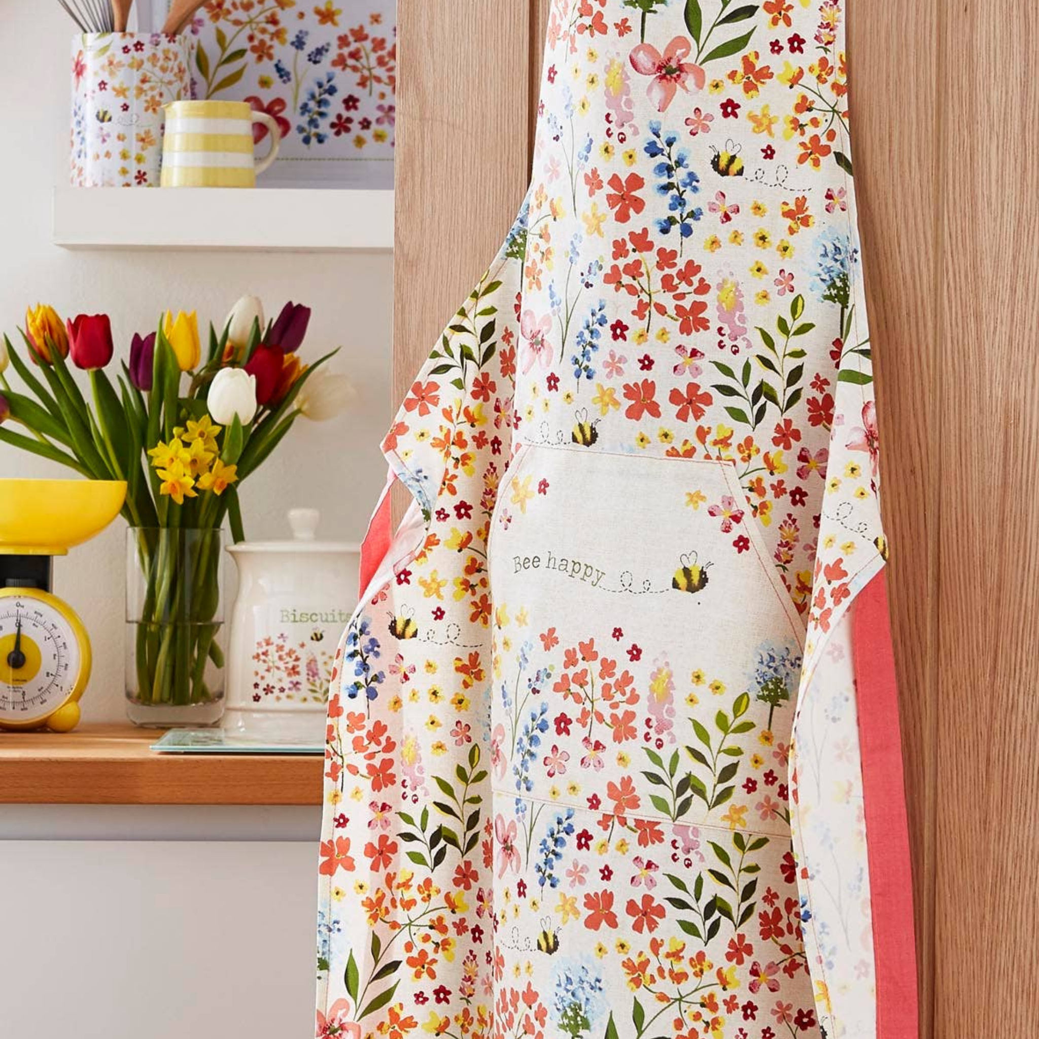 A vibrant mix of beautiful hand-painted fresh flowers and happy busy bees. This colourful design will spread joy & happiness brightening up any room.