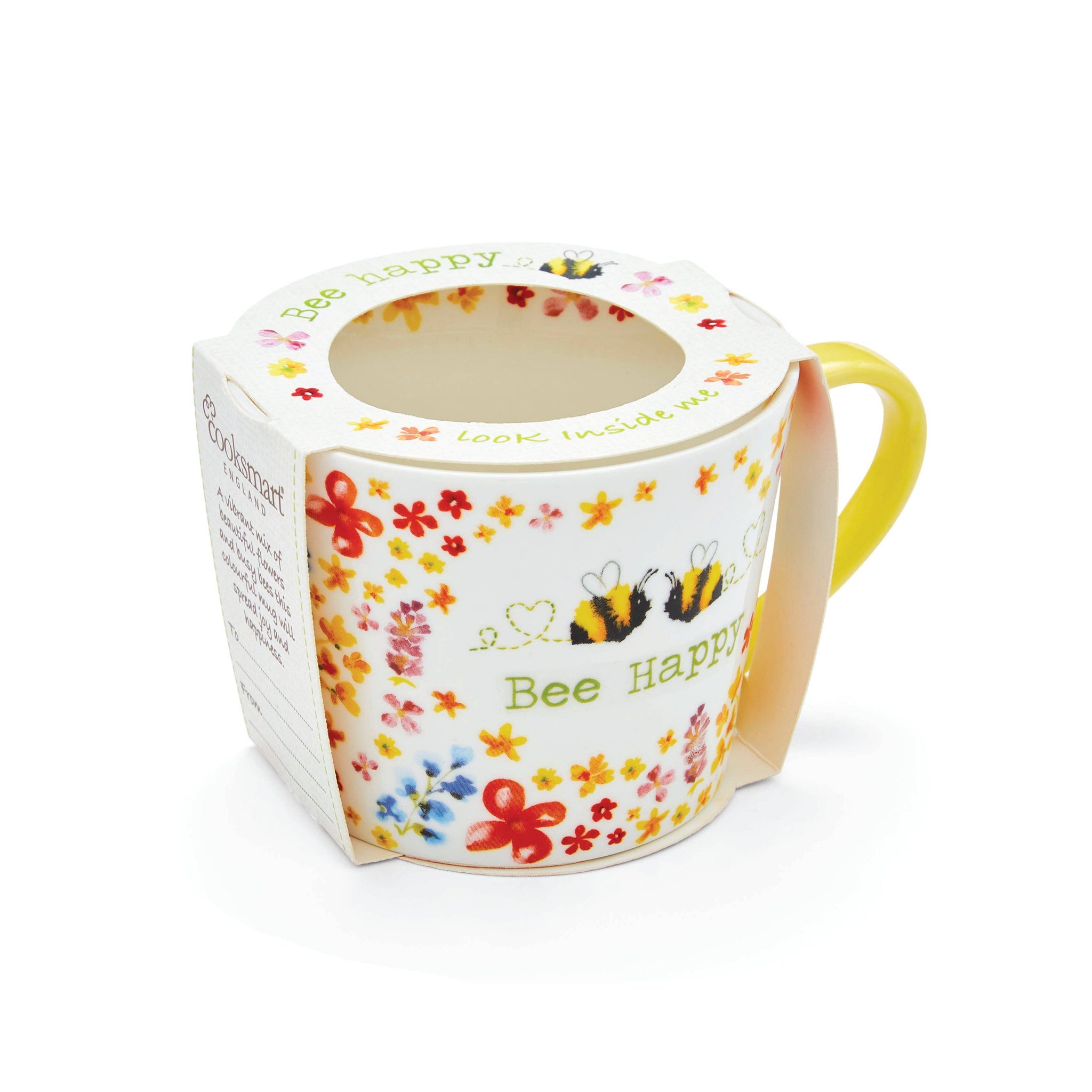 A vibrant mix of beautiful hand-painted fresh flowers and happy busy bees. This colourful design will spread joy & happiness brightening up any room.