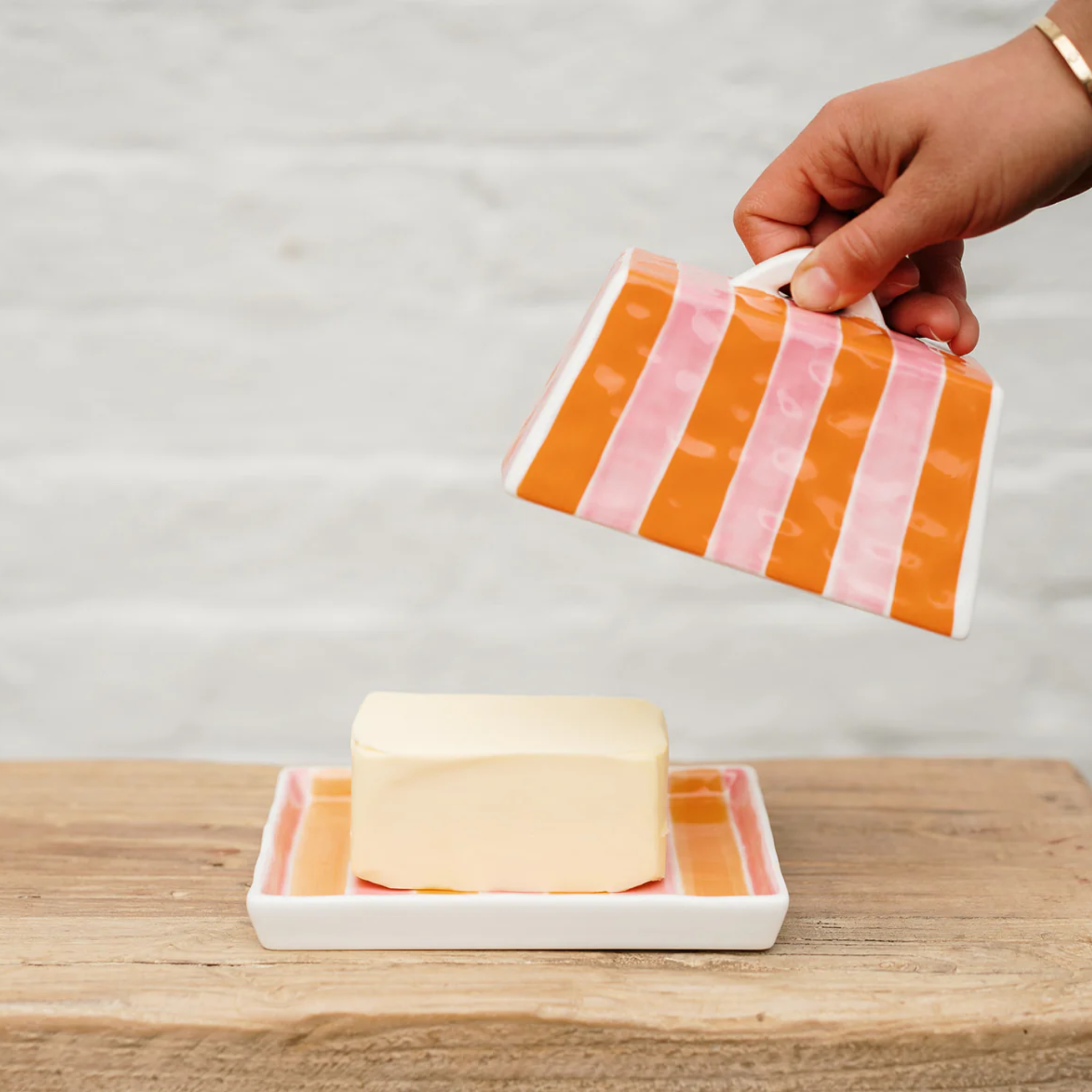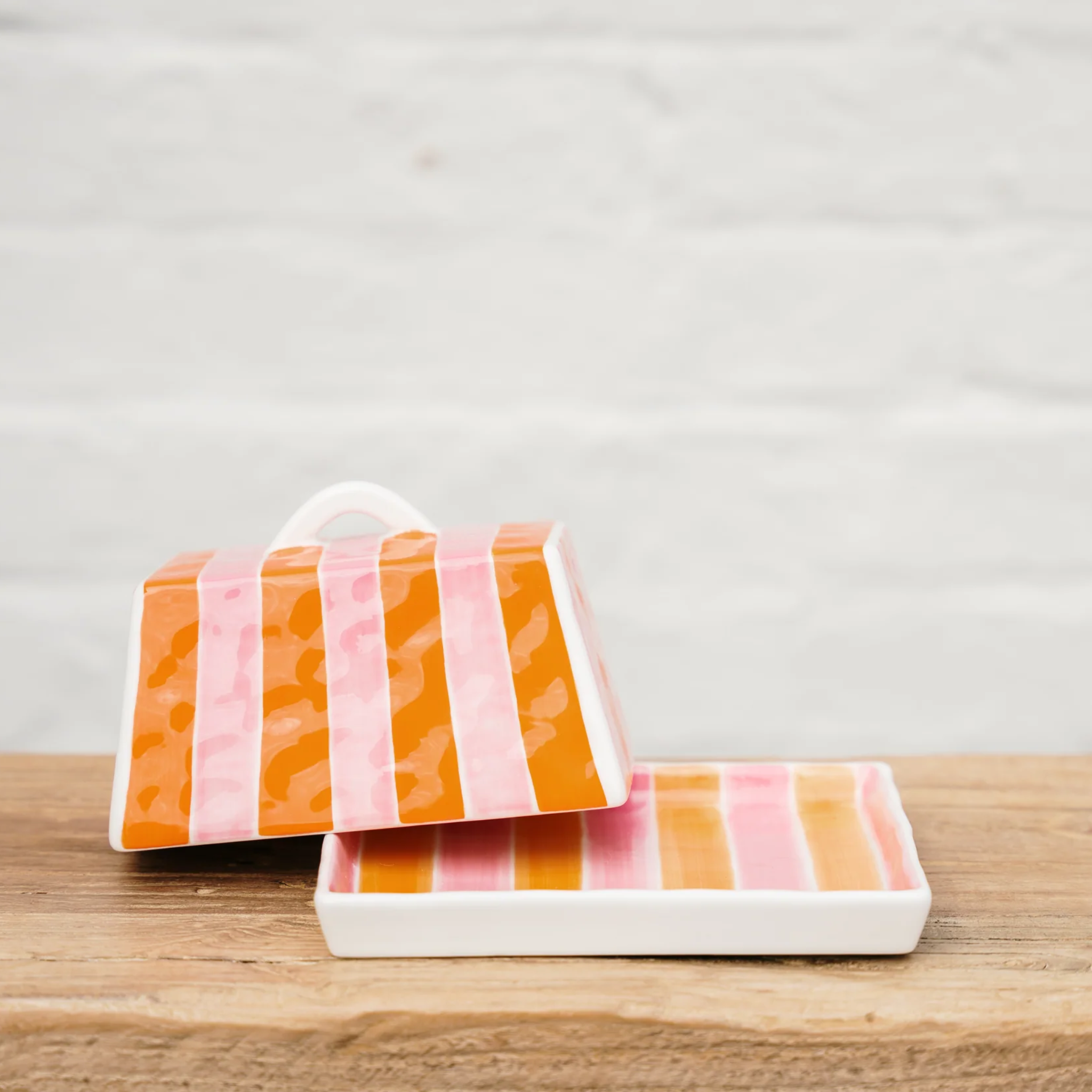 Orange & Pink Stripe Butter Dish