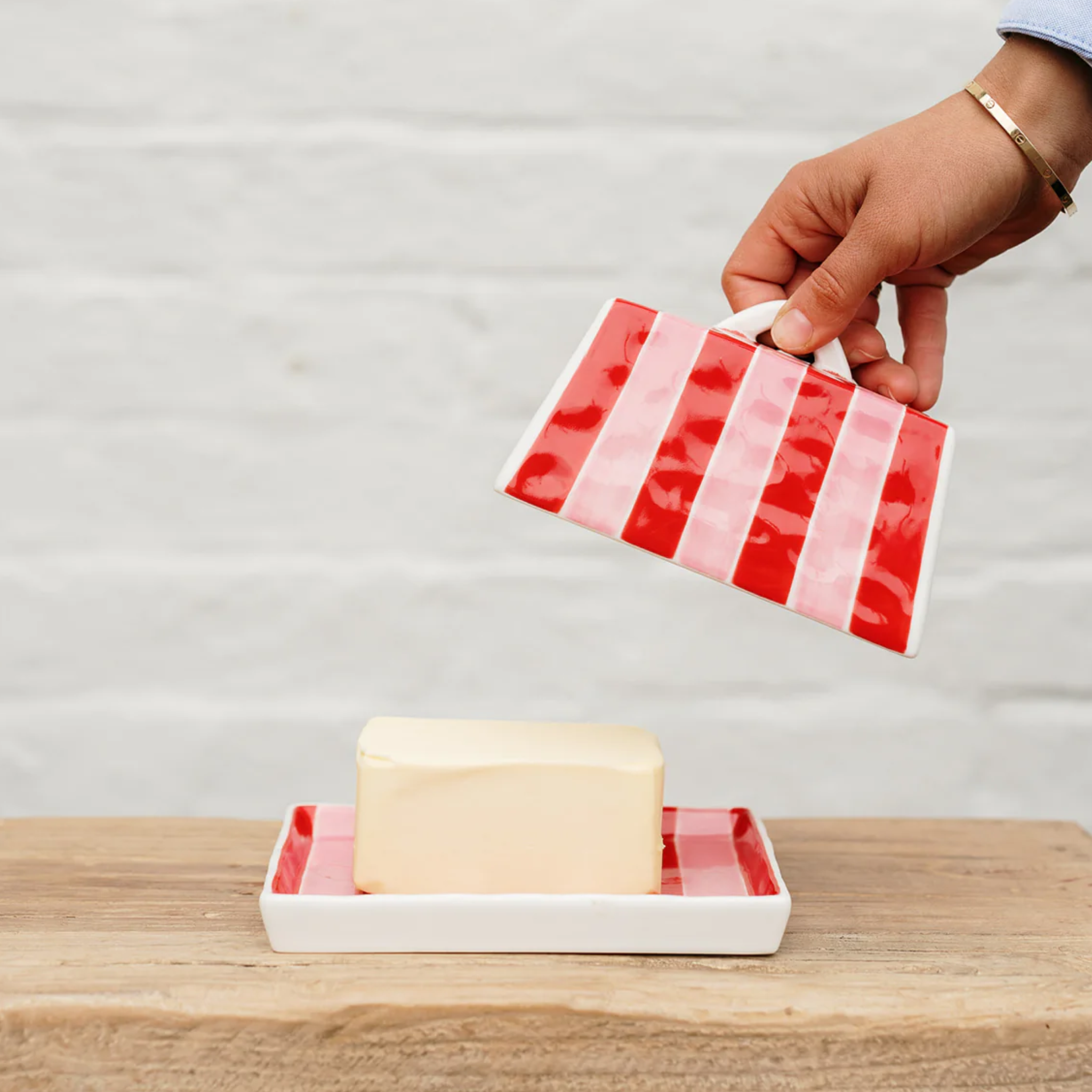 Pink & Red Stripe Butter Dish