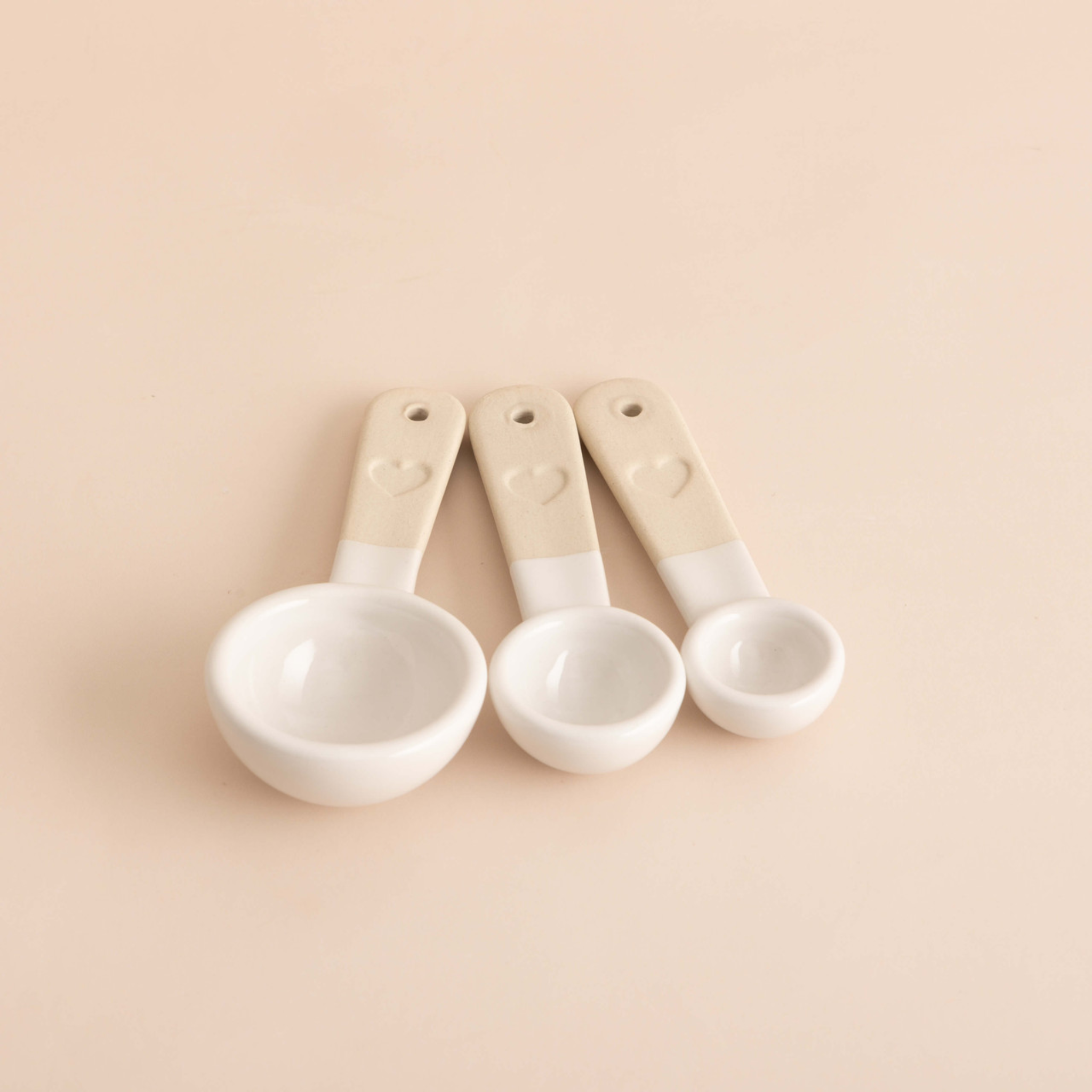 Crafted from durable stoneware, this three-piece measuring spoon set brings French Provincial charm to your kitchen. Each spoon features a delicate debossed heart and comes in calming neutral tones with a mix of matte and glossy finishes.