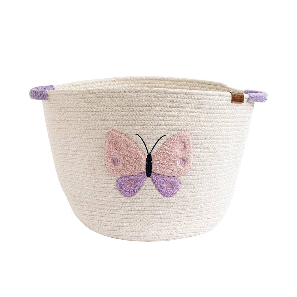 Bring imagination into everyday storage with the Butterfly Cotton Rope Embroidered Hamper. Featuring a beautifully embroidered pink and purple butterfly, this piece is both practical and inspiring. Crafted from soft, high-quality cotton rope, it provides a safe, no-snag solution for toys, laundry, or blankets. These cheerful hampers help keep your nursery tidy while sparking creativity, making organisation feel like a flight of fancy.