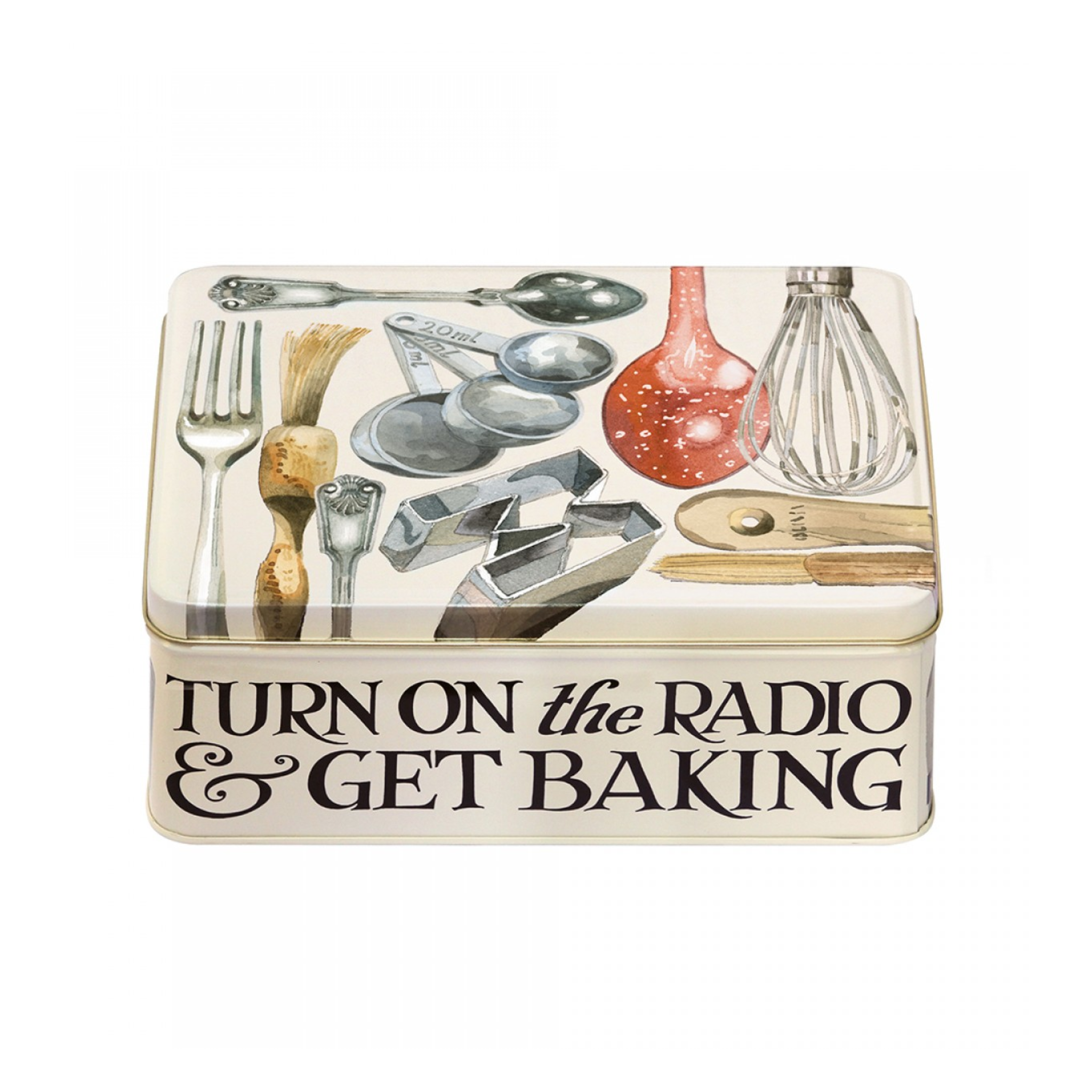 This charming Emma Bridgewater biscuit tin combines practical storage with vintage-inspired style. Featuring the delightful "Turn on the Radio & get baking" design, it keeps your favourite treats fresh while bringing warmth to any kitchen. The timeless Making & Baking pattern makes it an ideal gift for homeware enthusiasts and baking lovers alike.