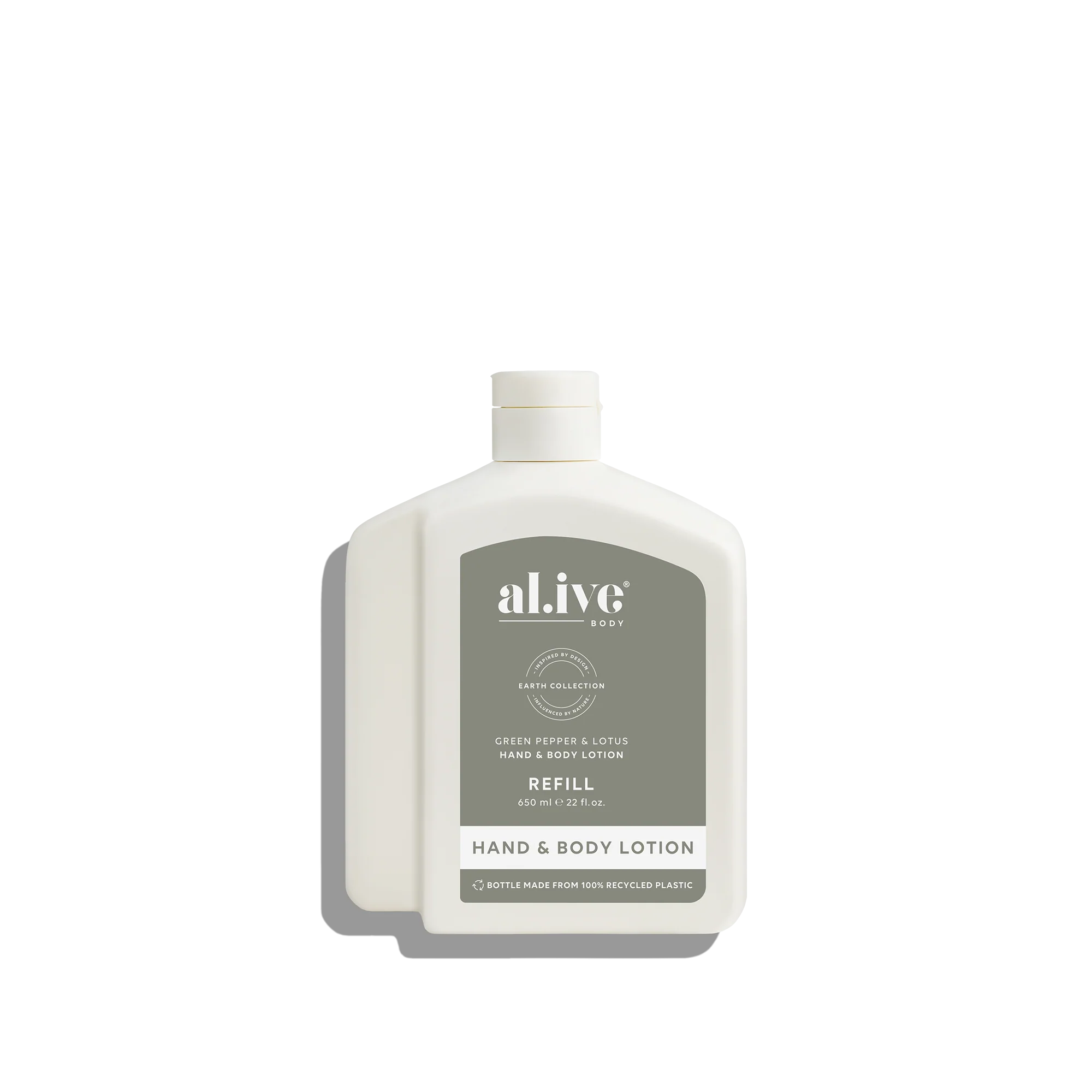 Refill your Green Pepper & Lotus Lotion bottle with the 650 ml Lotion Refill. This sustainable refill solution is designed to reduce waste and offer a practical, eco-friendly way to top up your favourite al.ive body essential.