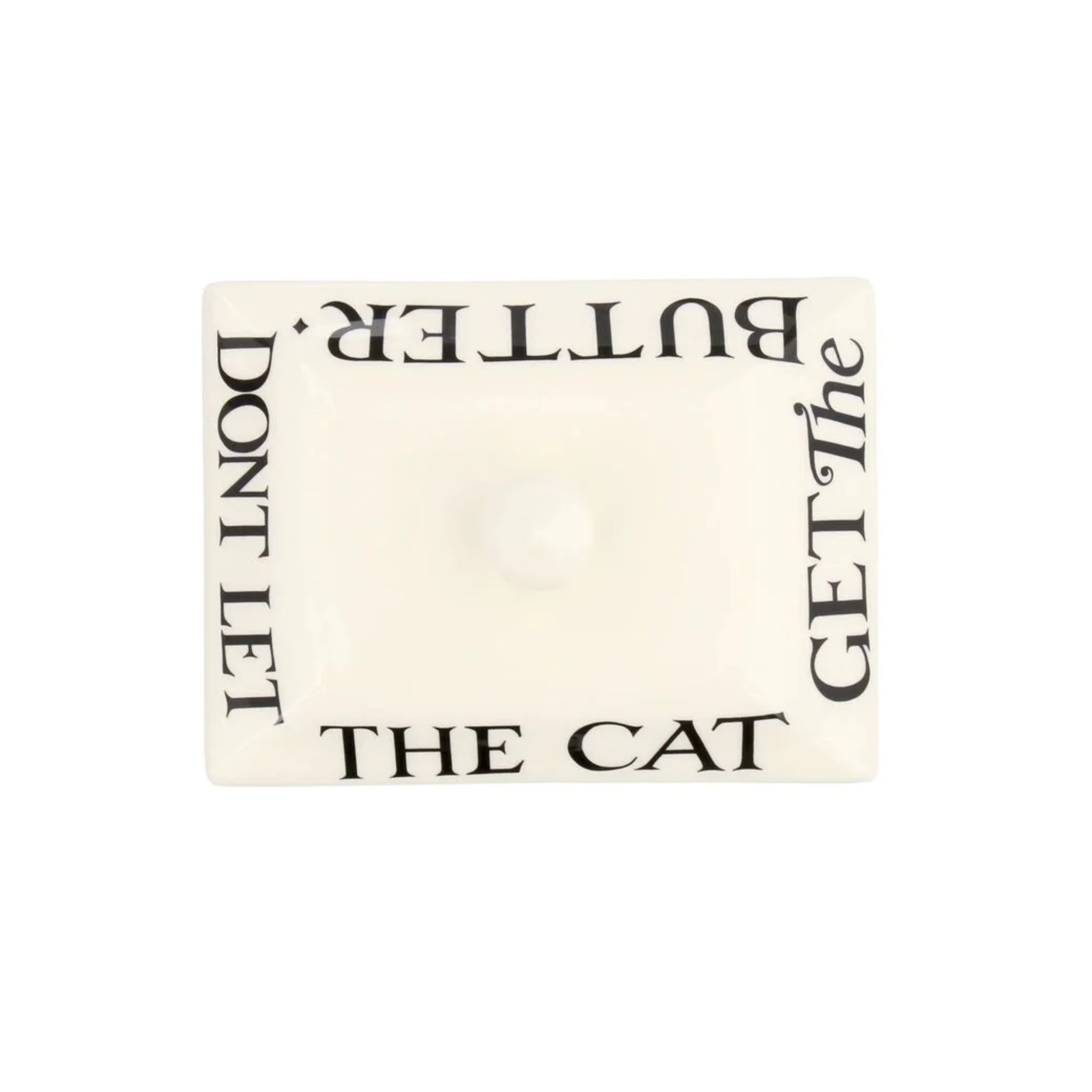 Product Wording Outside: HALF A POUND of BEST BUTTER. Lid: DON'T LET THE CAT GET The BUTTER
