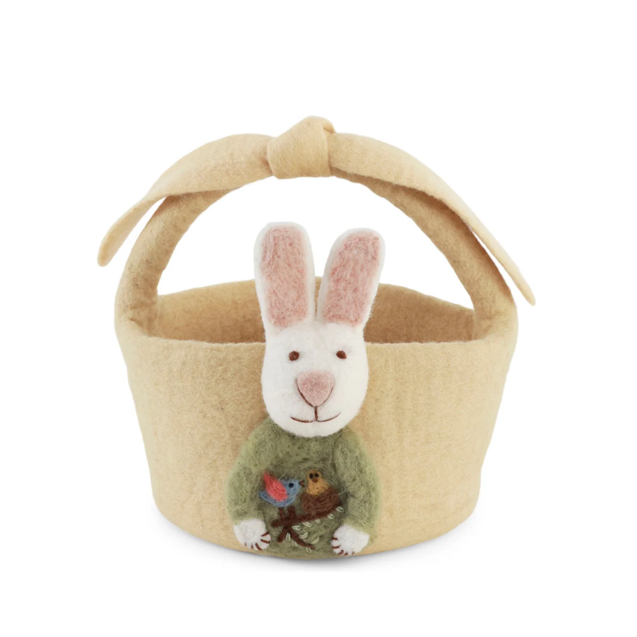 The Gry & Sif Felt Big Basket with Bunny Light Yellow is a delightful blend of functionality and Scandinavian charm. Handcrafted in Nepal from 100% New Zealand wool, this beautiful felt basket features a soft light yellow tone and a friendly bunny detail wearing a green jumper with embroidered birds. Perfect for Easter egg hunts, gifting or as a decorative storage piece, it brings warmth and playfulness to any setting. Designed in Denmark and ethically produced under fair trade conditions, this basket is both practical and full of personality.
