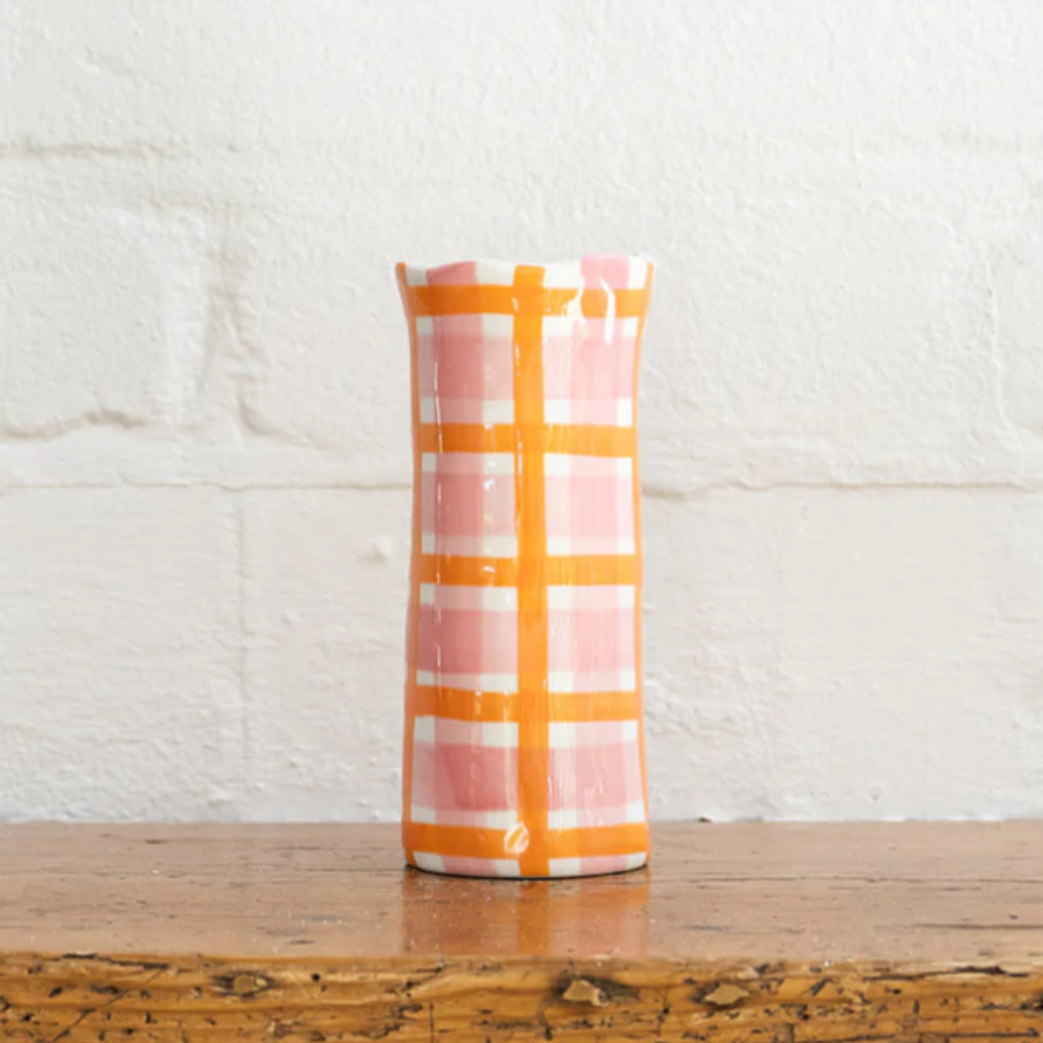 Orange & Pink Gingham Small Vase