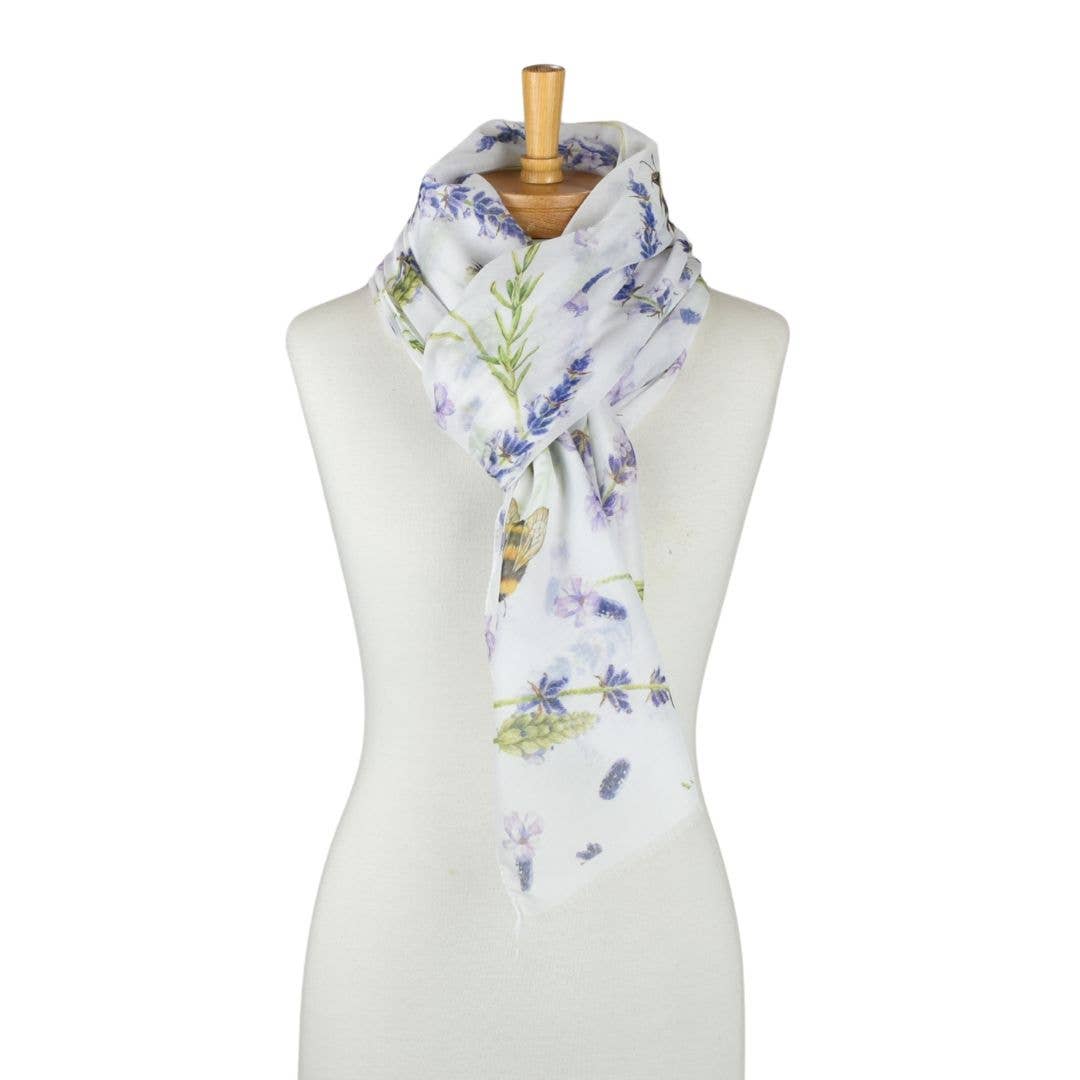 Embrace comfort and elegance with the White Lavender Bees Garden Scarf. Drawing inspiration from blooming gardens and the soothing buzz of bees, this lightweight scarf captures the essence of warm spring and summer moments.