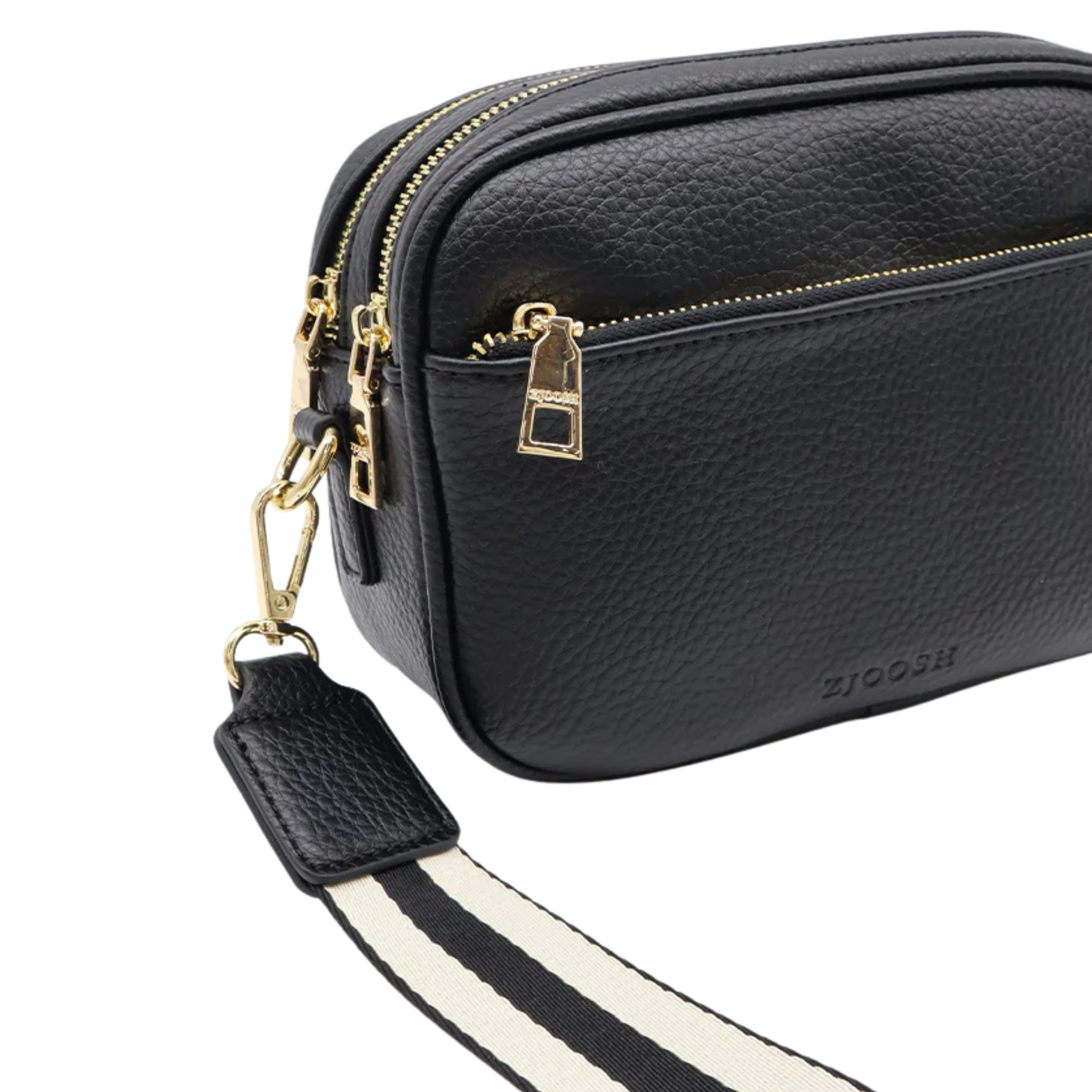 Carry your day with confidence using the Ruby London Cross Body Bag. This versatile companion features a sophisticated finish accented with warm gold-tone hardware that works beautifully with any wardrobe. Two zippered compartments and an external pocket keep your belongings organised and secure, while the included PU and webbing straps let you switch between polished and casual styles effortlessly. Whether you're heading to the office, exploring the weekend, or travelling, this lightweight cross body bag adapts to your lifestyle with ease and understated elegance.