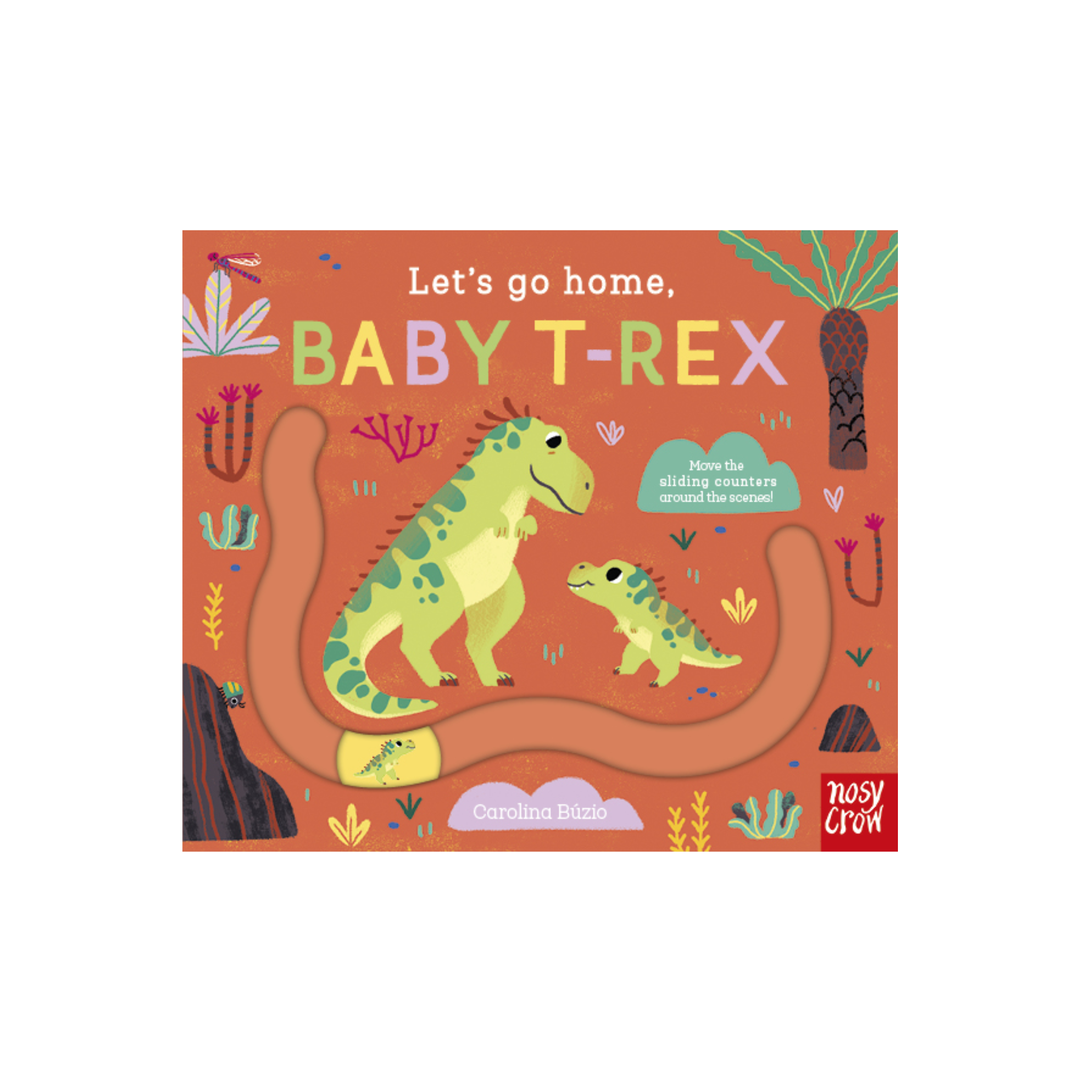 Help the baby dinosaurs find their way home in this fun sliding counter series! Meet T-rex, stegosaurus, pterodactyl and triceratops – four adorable baby dinosaurs who are lost in the wild! With easy-to-use moving parts and four unique tracks to develop hand-eye coordination and concentration, babies and toddlers will enjoy taking the baby dinosaurs home in this robust, satisfying board book. Scan the Stories Aloud QR code on the back cover to read along with the story!