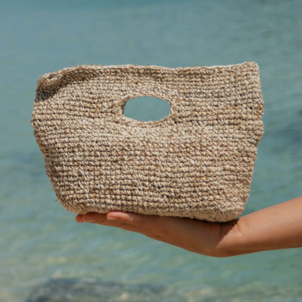 This clutch-style bag, crafted by skilled artisans in Nepal, features a secure zip closure to keep all your essentials safe during a day out. Handwoven from a blend of hemp and cotton, it combines practicality with style.