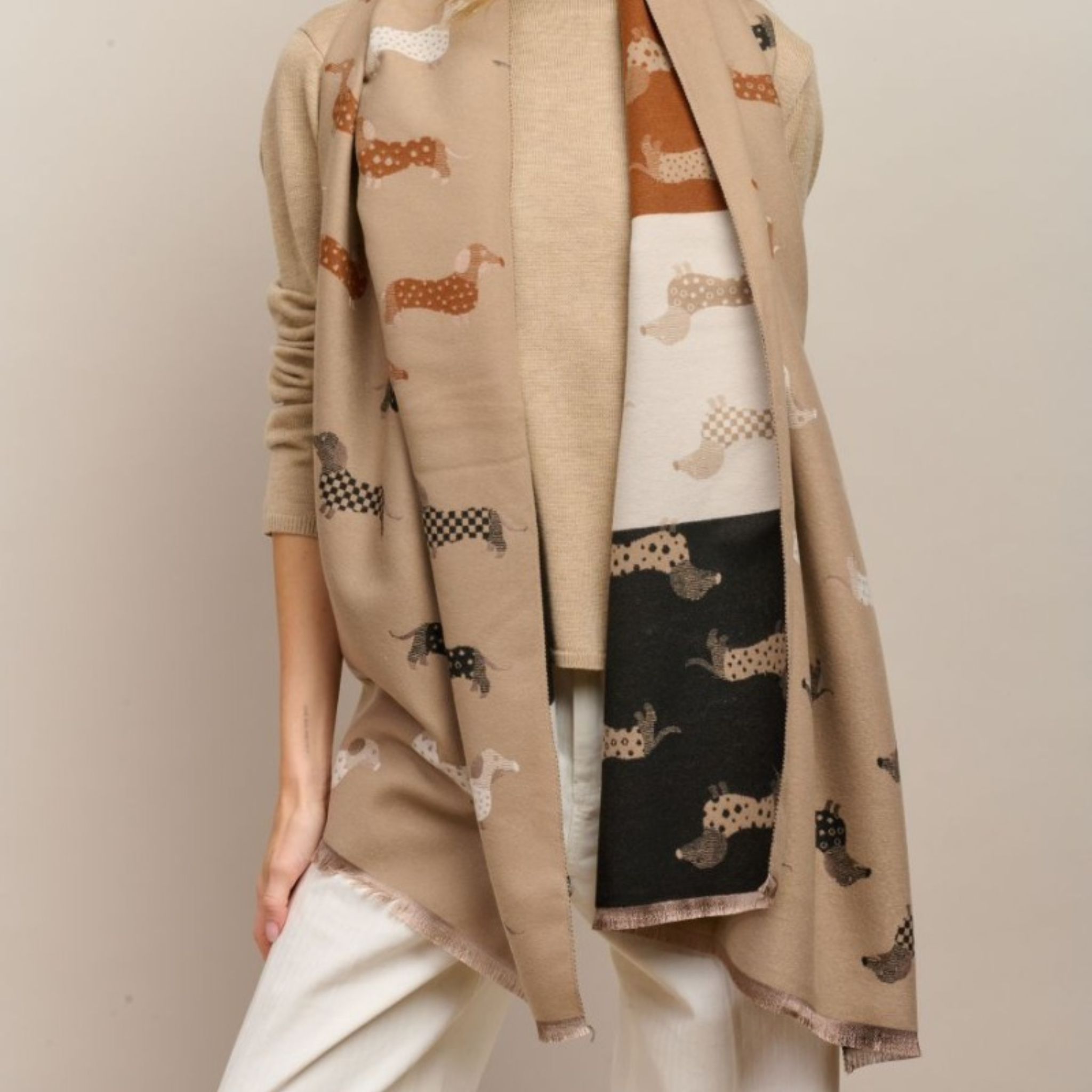 Add personality to your wardrobe with the Dexter Scarf. Adorned with charming dog motifs, this thoughtful accessory effortlessly enhances any ensemble while bringing warmth and character to your daily looks. It's the perfect companion piece for creating outfits that feel authentically you.