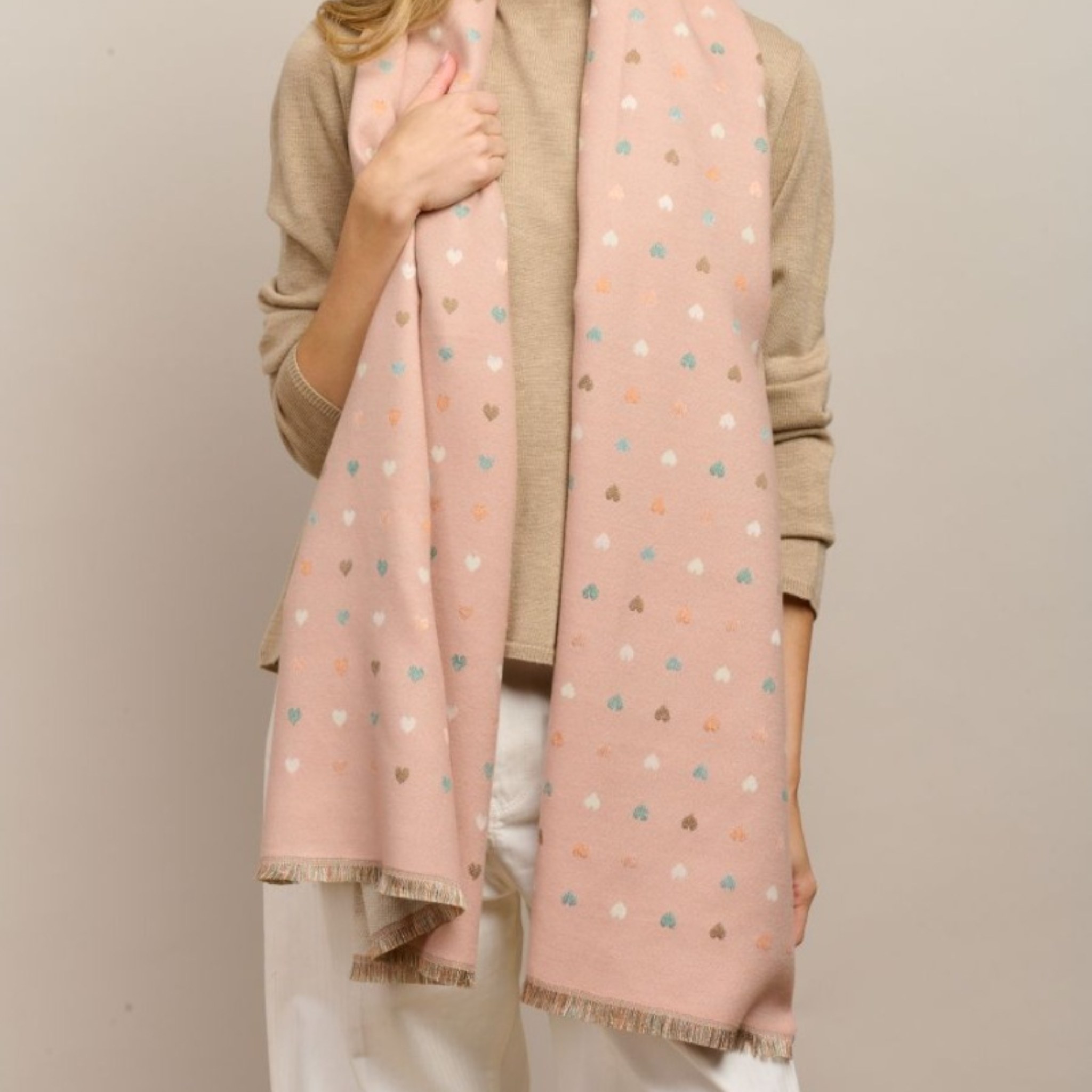 Transform your look with the Pink Mini Heart Scarf. This must-have accessory effortlessly adds sophistication and charisma to any outfit, making it an essential addition to your wardrobe.